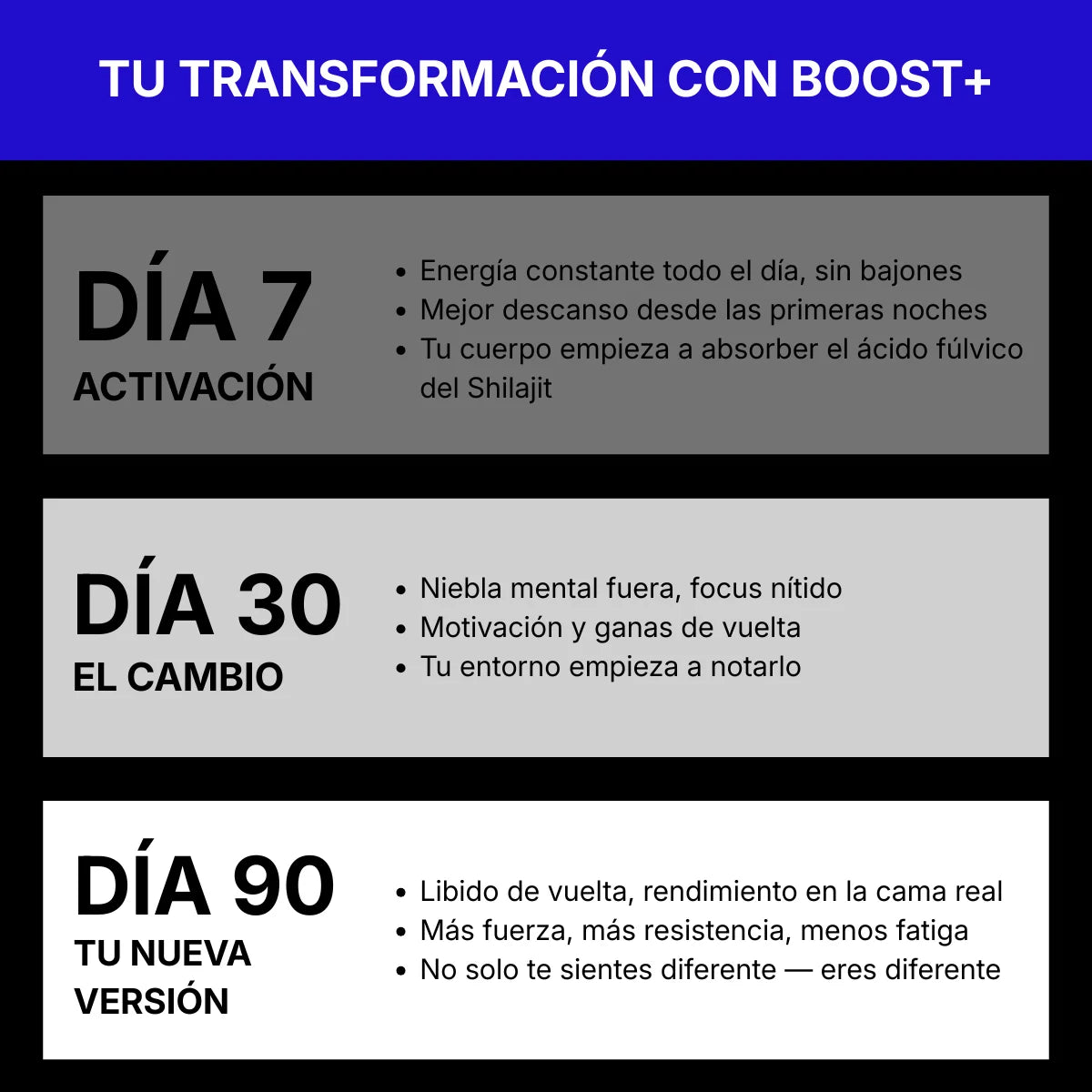Empezar hoyNivel de energía y rendimiento: con BOOST+ vs sin suplementación
